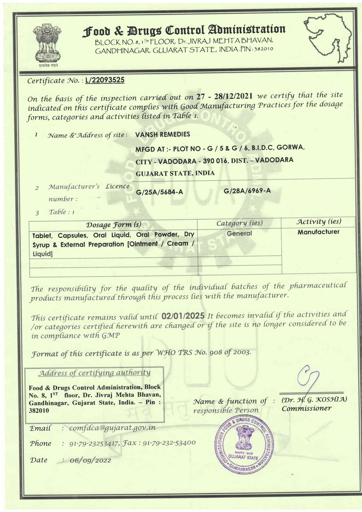 WHO-GMP Certificate